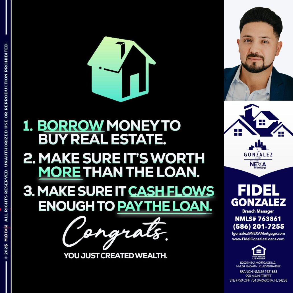 Hi, my name is Fidel Gonzalez. I’m a Loan Officer with NEXA Mortgage LLC., offering personalized mortgage solutions, fast customized quotes, great rates and service with integrity.