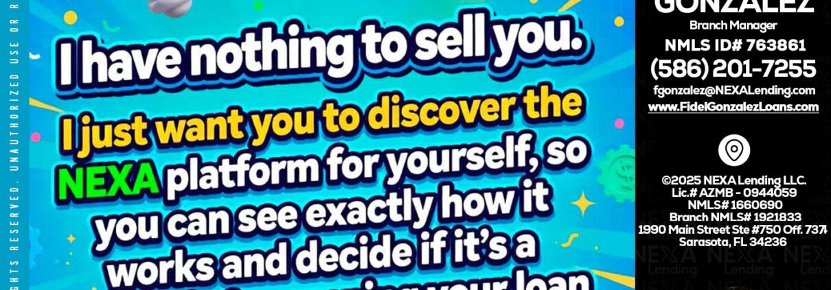 Hi, my name is Fidel Gonzalez. I’m a Loan Officer with NEXA Lending LLC., offering personalized mortgage solutions, fast customized quotes, great rates and service with integrity.