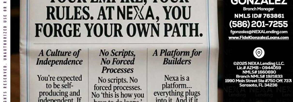 Hi, my name is Fidel Gonzalez. I’m a Loan Officer with NEXA Lending LLC., offering personalized mortgage solutions, fast customized quotes, great rates and service with integrity.