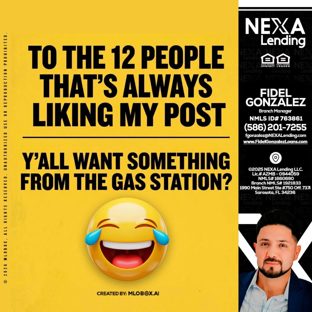 TO THE 12 PEOPLE - Fidel Gonzalez -Branch ManagerHi, my name is Fidel Gonzalez. I’m a Loan Officer with NEXA Lending LLC., offering personalized mortgage solutions, fast customized quotes, great rates and service with integrity.