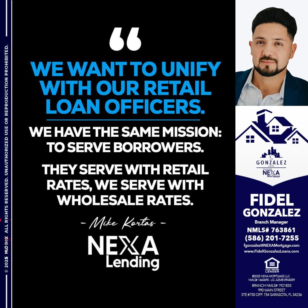 WE WANT - Fidel Gonzalez -Branch ManagerHi, my name is Fidel Gonzalez. I’m a Loan Officer with NEXA Mortgage LLC., offering personalized mortgage solutions, fast customized quotes, great rates and service with integrity.