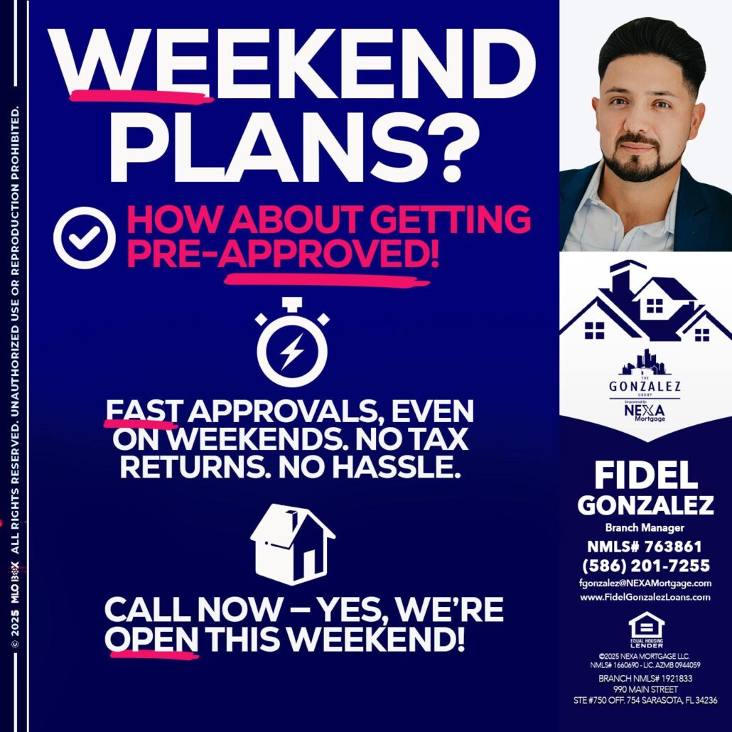 Hi, my name is Fidel Gonzalez. I’m a Loan Officer with NEXA Mortgage LLC., offering personalized mortgage solutions, fast customized quotes, great rates and service with integrity.